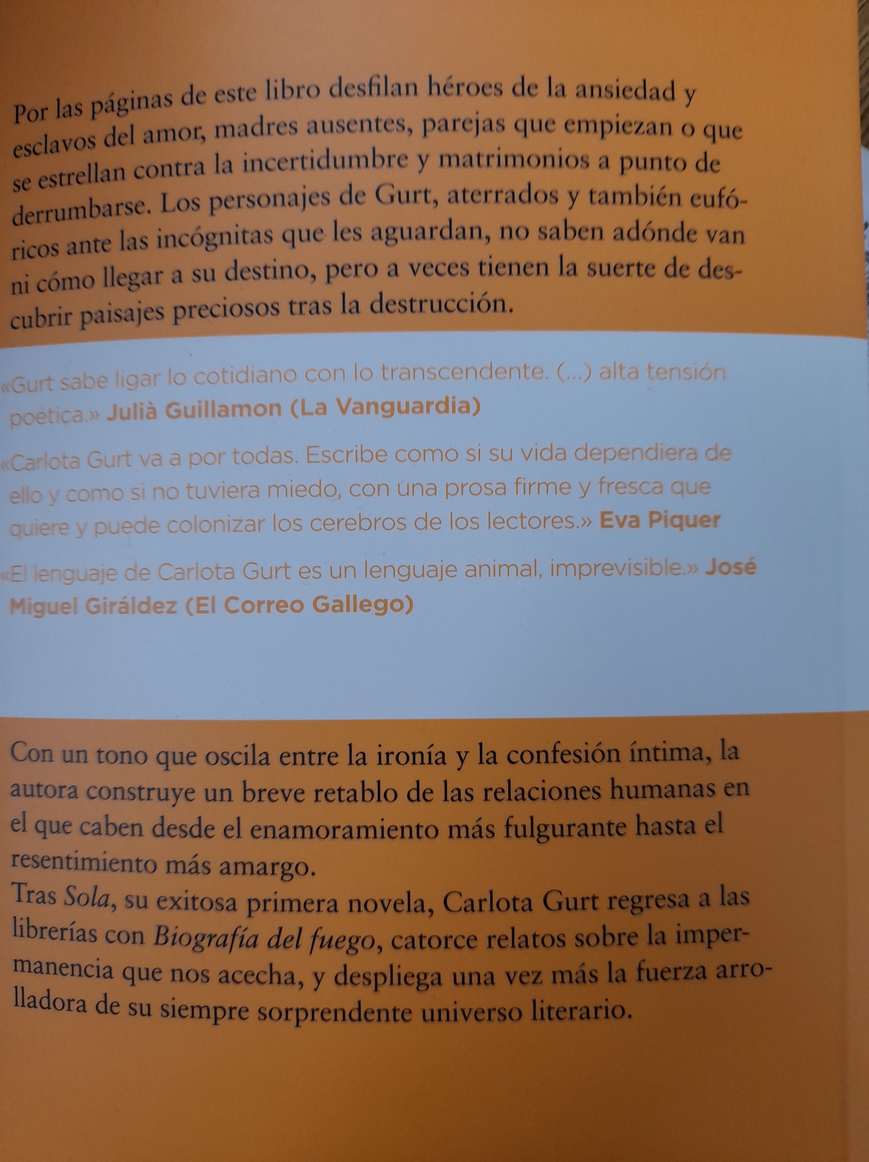 Los relatos de este libro no van más allá de lo cotidiano de unas cuantas vidas ordinarias. Sà que va, sin embargo, más acá, y el juego de Carmen del RÃo Bravo profundiza hasta lo esencial a partir de escenas que lejos de caer en lo anecdótico buscan explicar algo de nuestra naturaleza humana. En ello también va lo poético del asunto: Carmen del RÃo enchufa el microscopio literario para enfocar bellezas esenciales, no siempre agradables, a veces dramáticas o incluso deleznables, pero de un indiscutible atractivo estético y moral. Se da al juego, a la suposición y nunca renuncia a la sobrecogedor de lo Ãntimo. Asà que ojalá pudiera tener a Carmen del RÃo comentando su obra en mi librerÃa, en esta preciosa edición de relatos cortos y microrrelatos, que se leen a pequeños sorbos y con el placer de quien cata algunas historias bien aliñadas.Â