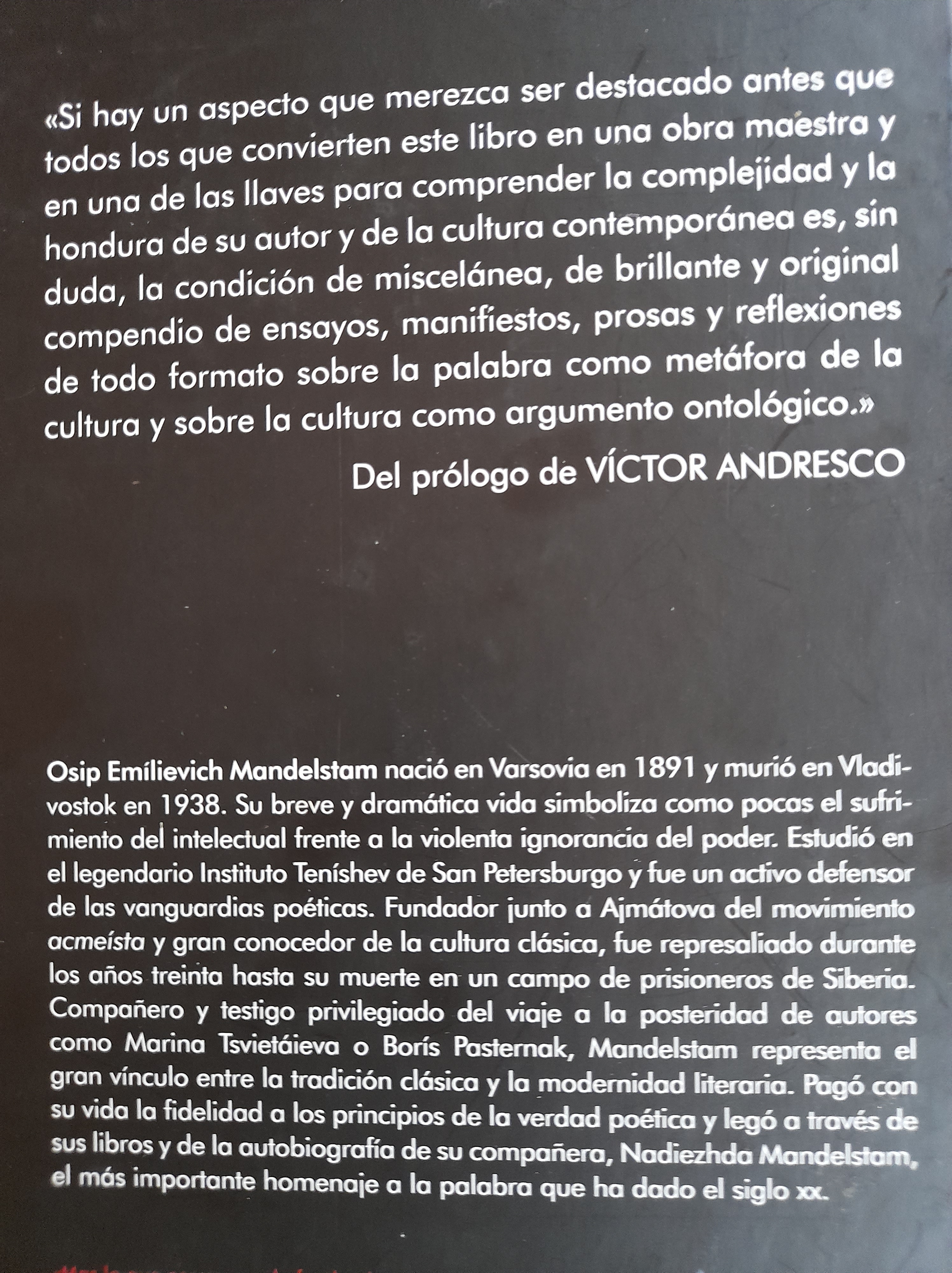 Navona editorial, 2019. Osip Mandelstam, 1928. Trad Víctor Andresco. 156 páginas. Pvp 24 €.