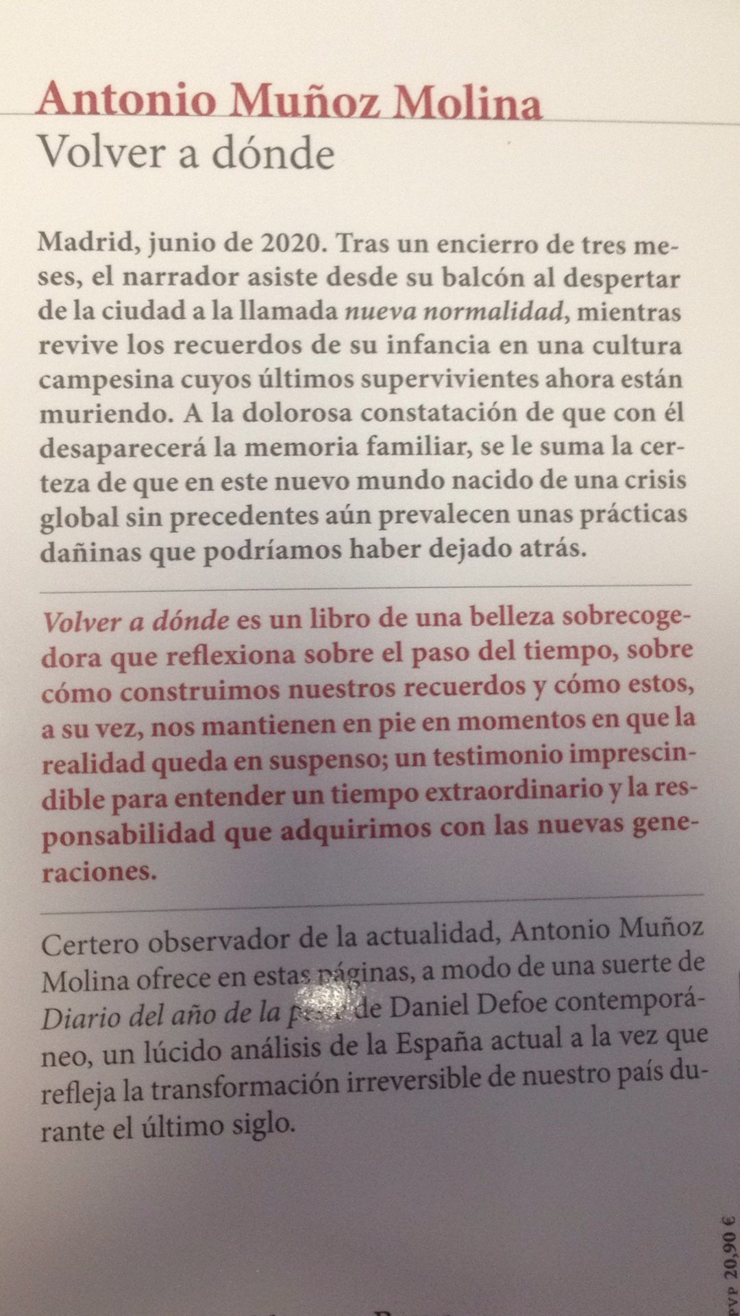 Hablo de responsabilidad de los que se quedan y de los que se van y la para mà exasperante actitud conservadora de nada, que es lo que va quedando. Lo viejo ya fue y su valor está en alimentar la memoria -verdadera si está libre de melancolÃas- para evitar la ruptura propia y alocada de las tendencias con el tiempo al que objetivamente pertenecen. Porque una cosa es que no progresemos, otra que regresemos y otra que no se pueda progresar. Las tendencias y su corriente nos llevan a las ciudades. Me pregunto dónde está lo nuevo propio de los pueblos. De momento leer a Muñoz Molina es una buena idea, una voz seria con la que polemizar y crear argumentos.