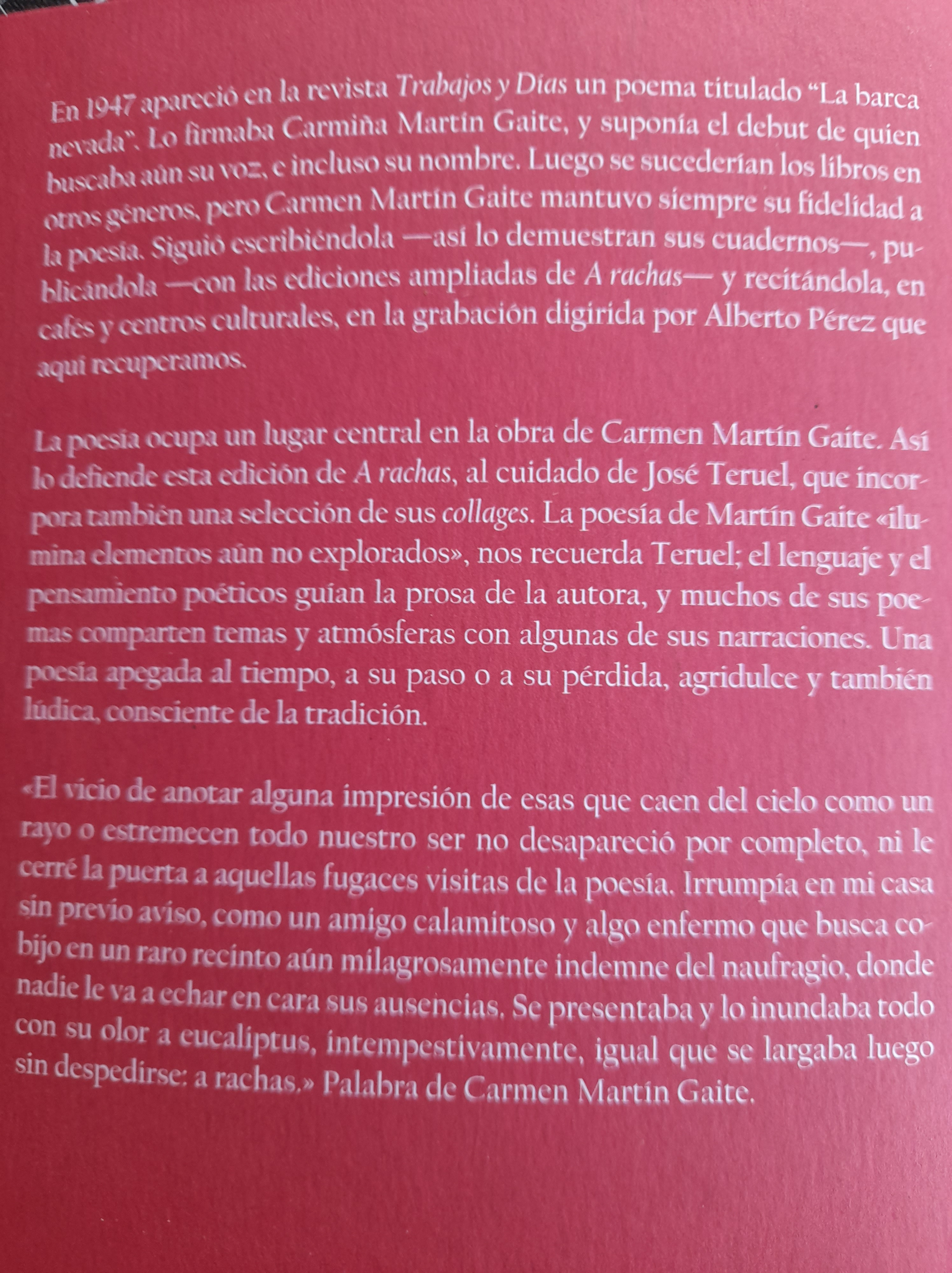 bien muy libre, ni está siempre ni cumple con los ritmos establecidos), la creación de un