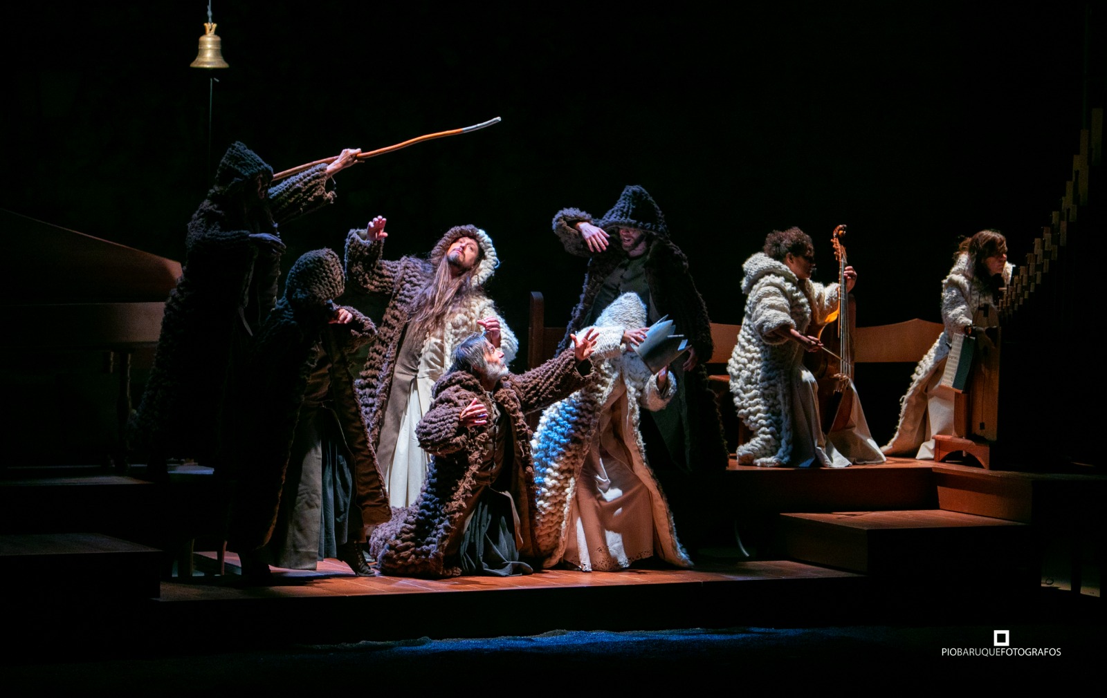 El martes 27 Nao d´amores rebajó la fiesta hasta la trágica historia de Inés de Castro, casada en secreto con el infante don Pedro de Portugal y ejecutada por orden del rey don Alfonso, fuente de mitos y leyendas recogidas en los textos de Jerónimo Bermúdez y alimentadas ahora con la versión de Ana Zamora gracias a algunas potentÃsimas imágenes creadas para la ocasión de este montaje ya de por sà poético. EscenografÃa de madera que juega un importante papel a modo de bancada para los actores pero también de escaños, promontorio, escenario para las interpretaciones musicales… Esta puesta en escena está complementada por un estanque de agua, capaz en otros momentos de acoger la tierra bajo la que Nise ha sido enterrada o los cuerpos de sus asesinos ejecutados después por don Pedro ante el espectador en un ceremonial ejercicio coreográfico en el que el juego y la muerte se mezclan con sobrecogedora naturalidad. Impecables las interpretaciones textuales y las musicales, estas últimas como siempre a partir de la composición de Alicia Lázaro y para cuya interpretación se incorpora al contratenor José Hernández Pastor que, de alguna manera, representa el conflicto entre lo masculino y lo femenino. Hay un equilibrio perfecto entre lo simbólico (memorable la coronación de Inés desenterrada) y lo real, lo desesperadamente humano de los diálogos esenciales. El portentoso vestuario, los movimientos, la luz y, en fin, la rica pero sobria mirada de Ana Zamora consiguen de nuevo un espectáculo de inusitada belleza.