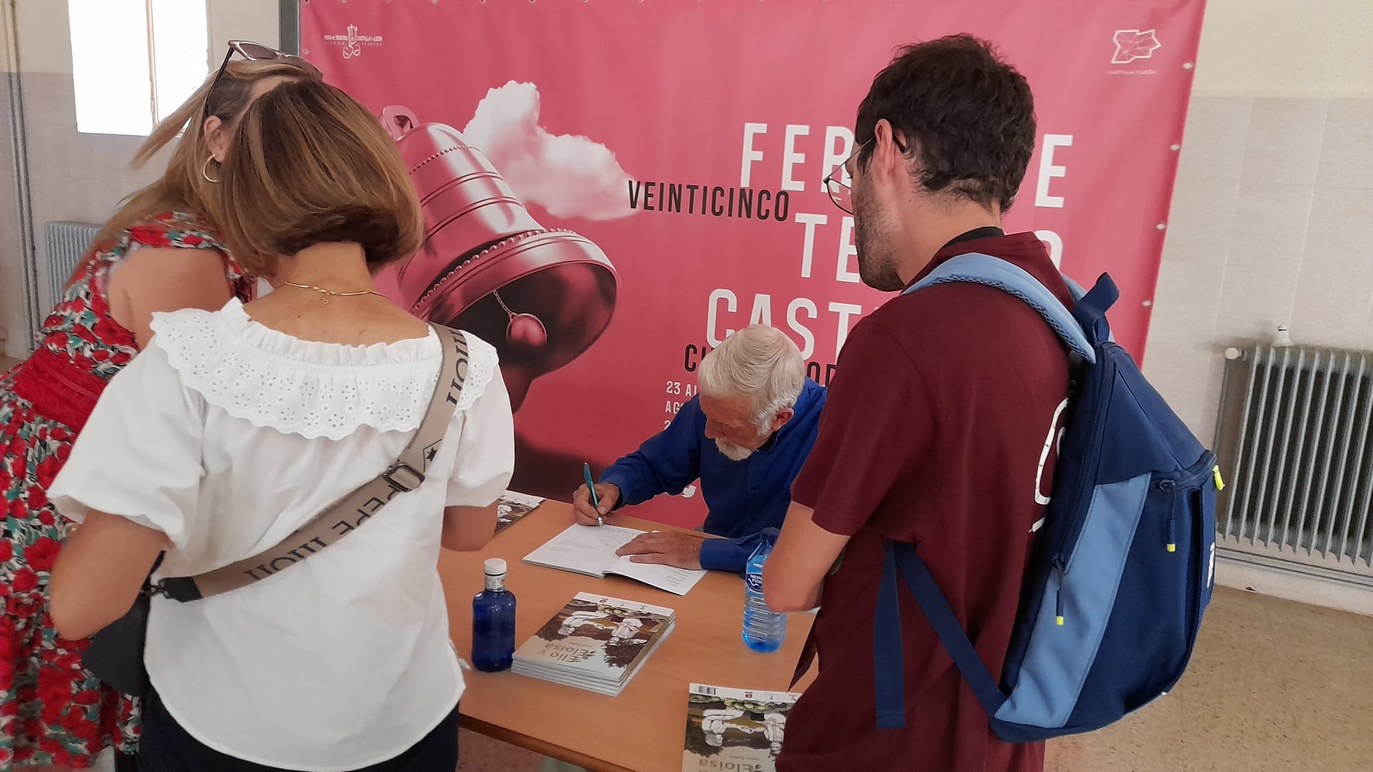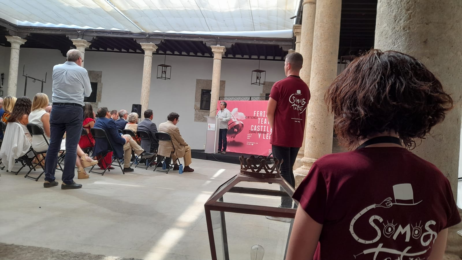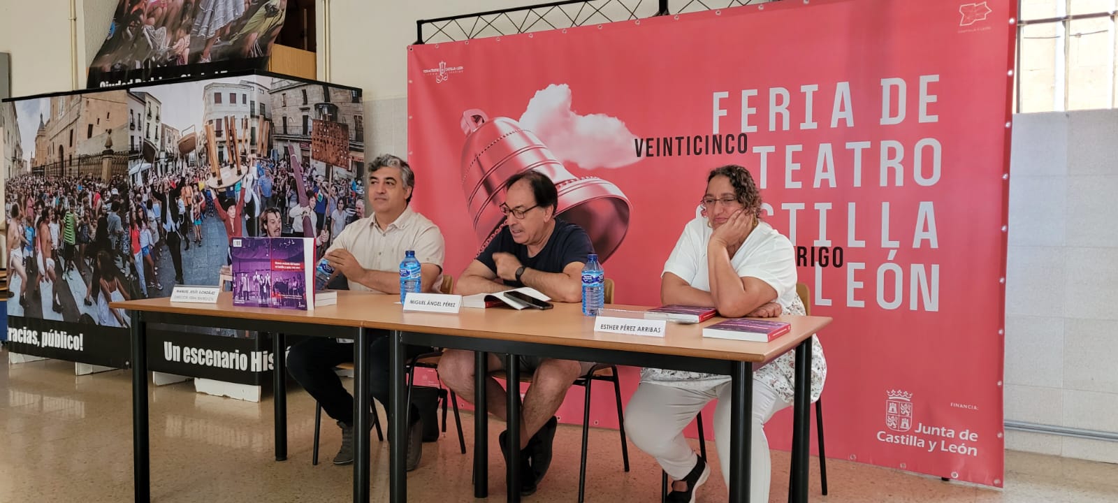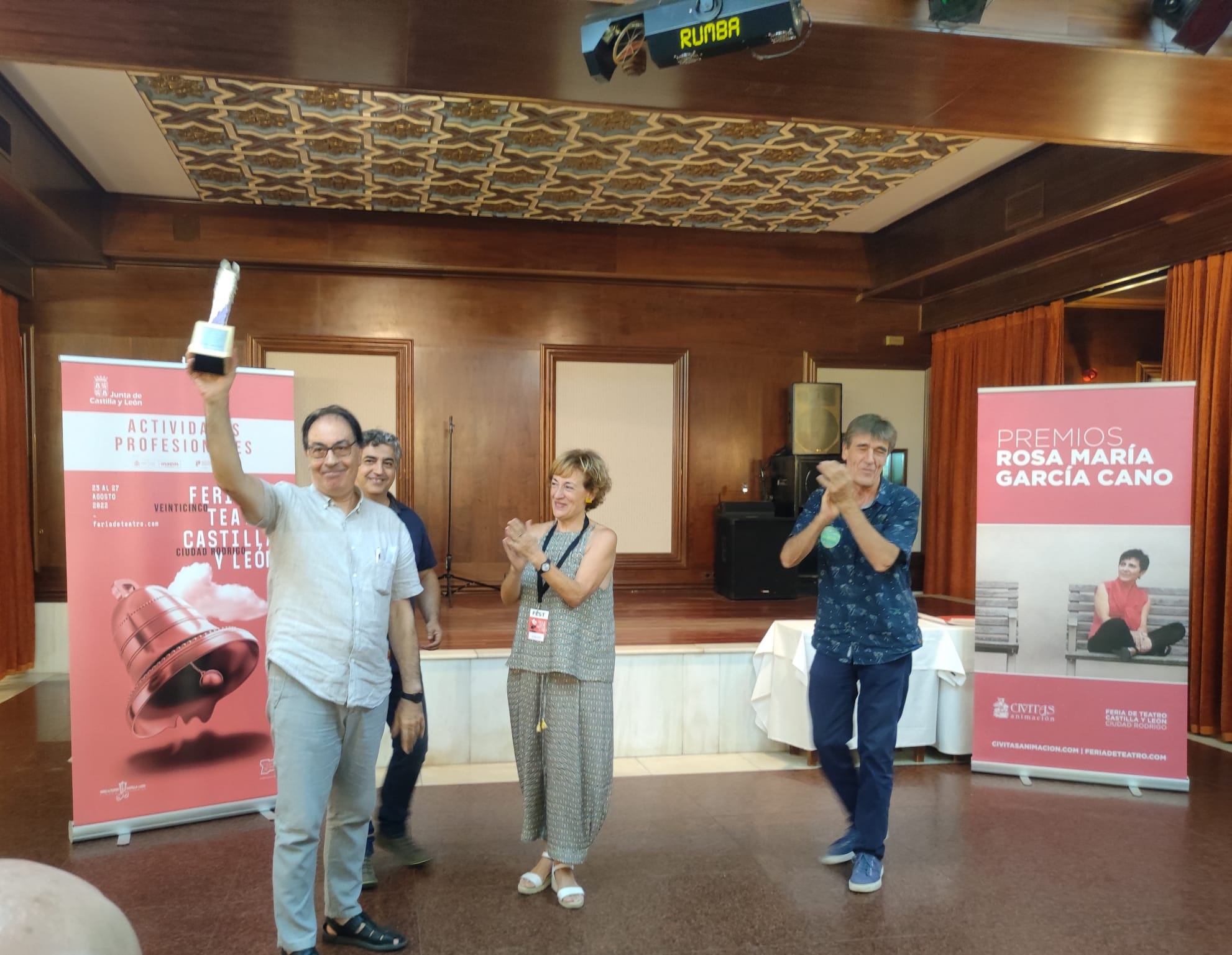 Estábamos por estar menos Esther y yo en esta edición de 2022 de la Feria de Teatro de Castilla y León que, como siempre, se celebra en Ciudad Rodrigo (23-27 de agosto) y, miren por dónde, hemos estado más que nunca. O esa sensación nos traemos de vuelta a Olmedo. Porque el plan original de descargarnos de exhibiciones de sala y disfrutar de las otras actividades de la feria ha dado un doble resultado favorable de lo más jugoso. Por un lado hemos estado más en las actividades en las que estábamos y hemos podido dilatar ambigús y saludos postreros. Por otro nos hemos acercado con tiempo suficiente y en repetidas ocasiones a la exposición fotográfica de José Vicente, la instalación poética de Baychimo Teatro y las actividades que componen la que es, sin duda, programación más importante de la feria, aun no siendo la central: Divierteatro. De la misma manera pudimos acudir a la que para nosotros era cita irrenunciable de esta edición: el reconocimiento a Miguel Ãngel Pérez MartÃn (Maguil) -por cierto, colaborador de este blog- con el «Rosa MarÃa GarcÃa Cano» a la gestión cultural. Esther participó con el propio Maguil de la presentación del libro «Historia del teatro contemporáneo de Castilla y León» que hace unas pocas semanas se presentaba originalmente en Olmedo Clásico, y a la que acudà como librero de etiqueta teatral a la que voy cogiendo el gusto. Y, en fin, acompañamos lo mejor que supimos a nuestros compañeros de Artesa en el espacio creado para la feria… entre otras…